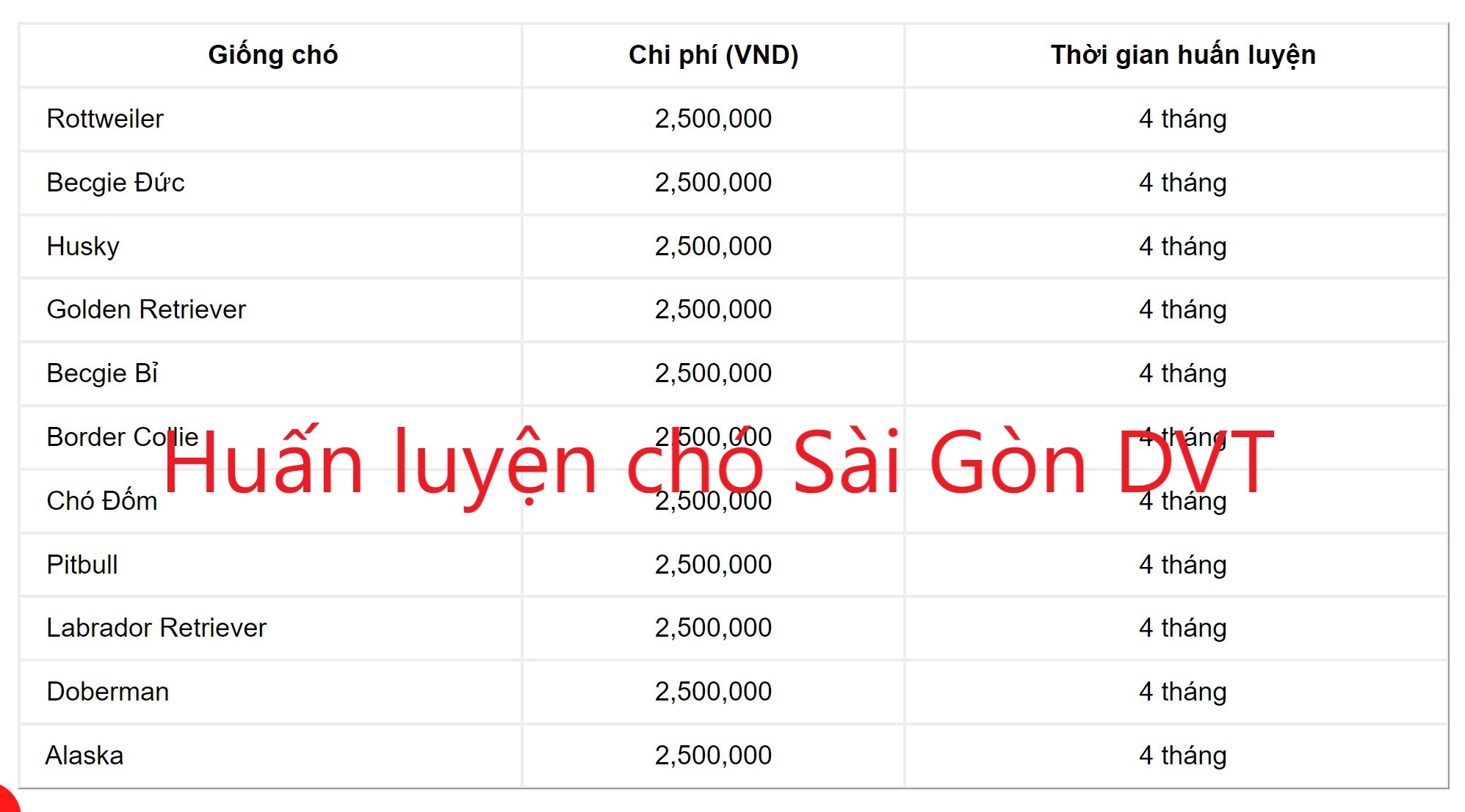 Giá huấn luyện chó tại TPHCM có thể dao động từ vài triệu đồng đến hàng chục triệu đồng tùy thuộc vào loại hình dịch vụ và chất lượng mà trung tâm cung cấp. Dịch vụ cơ bản như huấn luyện cơ bản, huấn luyện nâng cao hoặc huấn luyện chó chuyên nghiệp sẽ có mức giá khác nhau.
